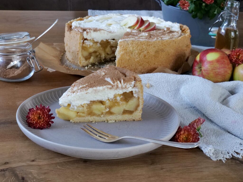 Ein leckeres Apfelkuchen-Rezept ist besonders im Herbst, aber eigentlich das ganze Jahr über beliebt und gehört einfach zu den Klassikern unter den Kuchenrezepten. Unser Apfelkuchen besteht aus einem klassischen Mürbeteig, der nach dem Zusammenkneten gekühlt wird. Die Füllung ist ein cremiger Apfelpudding, dem reichlich Apfelstücke und Zimt hinzugefügt werden, um eine herbstliche Note zu verleihen. Nach dem Abkühlen wird der Kuchen mit einer luftigen Creme aus Schmand und Sahne bedeckt und abschließend mit Zimt bestäubt. Dieser Apfelkuchen ist perfekt für gemütliche Nachmittage zum Kaffee oder als Dessert für besondere Anlässe.
